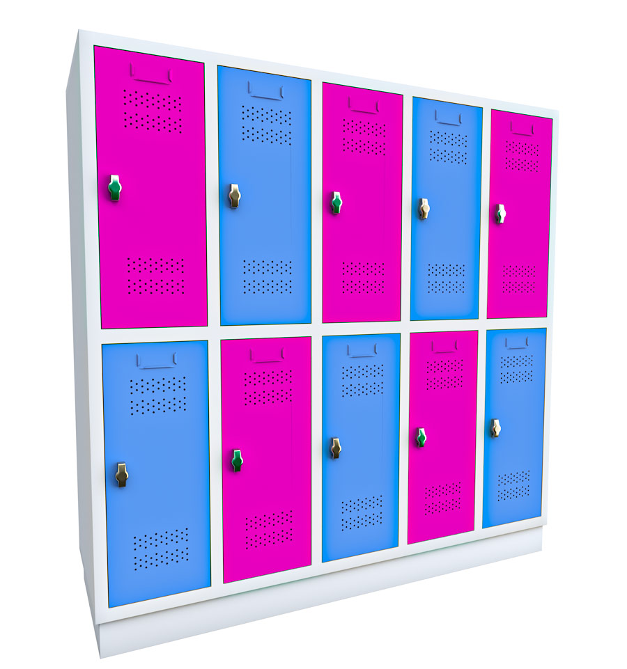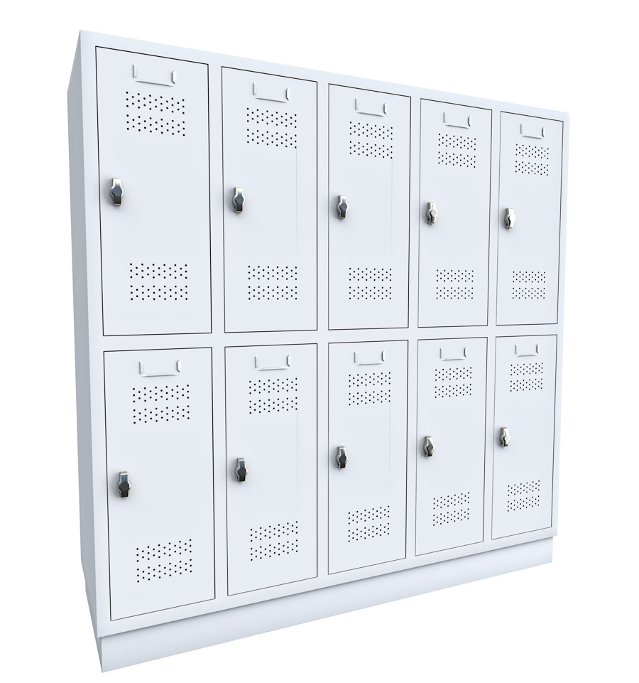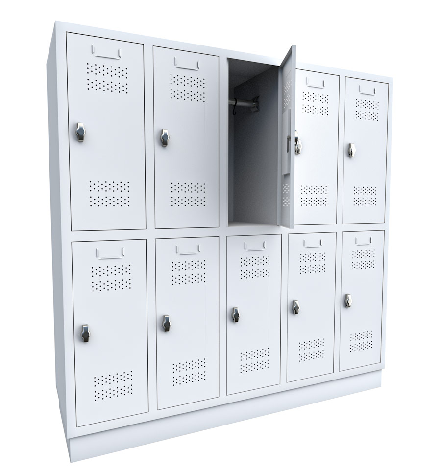Grundschulspind in der Größe 150 x 148 x 48 cm (HxBxT) mit 5 senkrechten Elementen mit je 2 Kammern und einer Sockelhöhe von 10 cm.
